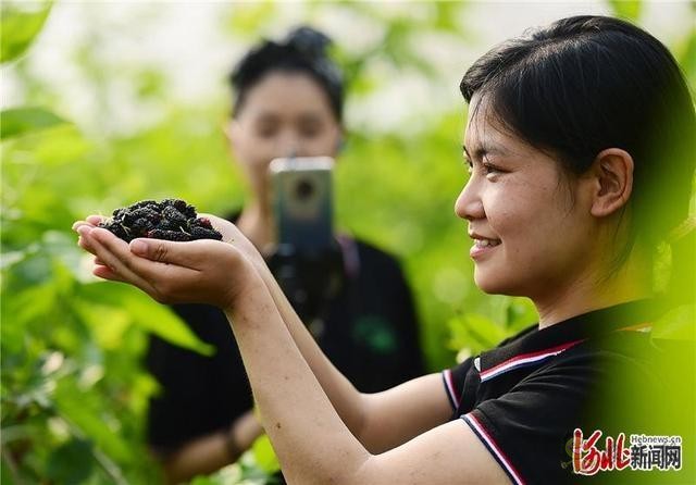 2020年4月28日,河北省贊皇縣蓮華山莊生態(tài)園里的管理人員在直播桑葚采摘線上銷售產(chǎn)品。蓮華農(nóng)莊是集綠色產(chǎn)業(yè)農(nóng)業(yè)、生態(tài)觀光采摘、農(nóng)業(yè)科普于一體的現(xiàn)代農(nóng)業(yè)產(chǎn)業(yè)園區(qū)。